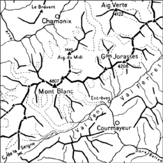 Kammverlaufsskizze:Kammverlaufsskizze: Kammverlaufsskizze des Mont Blanc-Gebiets.