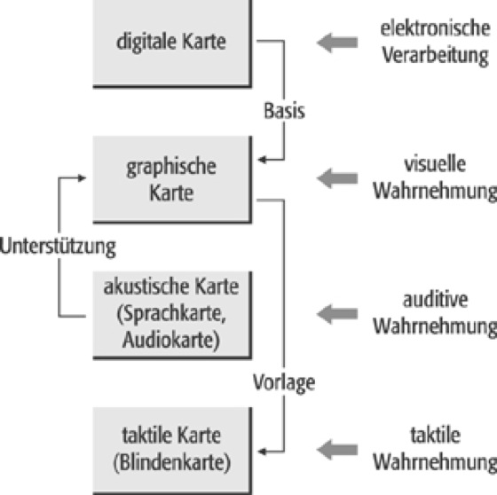 Die konzeptionelle und technische Herstellung von Karten hat sich in den letzten Jahrhunderten ten erheblich verändert (Kartenherstellung). So ist es aufgrund der häufig fachspezifischen Thematiken, der erforderlichen Einbindung in aufgabenbezogene kartographische Handlungsfelder und vor allem der Einbindung in teilautomatische elektronische Systeme nur noch zum Teil erforderlich, Karten auf der Basis individueller Erfahrungen zu konzipieren und technisch herzustellen. Im Zusammenhang mit Ansätzen der kartographischen Zeichentheorie und der kartographischen Informatik werden Erkenntnisse über abzubildende Datenstrukturen, über Zeichensysteme, über die Referenzierung datenbezogenen Wissens im Kartenmuster und die graphische Gestaltung bzw. Repräsentation von Karten formal beschrieben und im Rahmen von kartographischen Modellierungsprozessen, meistens rechnergestützt, für die konkrete Darstellung von Karten eingesetzt (kartographische Darstellung). Auch die Nutzung von Karten wird in Form von Kommunikationsschemata formalisiert, und für den Nutzer im Voraus z. B. in Geoinformationssystemen zur individuellen Anwendung angelegt. Dabei führen die technischen Möglichkeiten elektronischer Karten zu ganz neuen Präsentationsformen am Bildschirm (kartographische Präsentation), wie etwa die variable Präsentation von Kartensequenzen, der interaktive Eingriff in Karten (interaktive Karten), die Verknüpfung mit anderen Medien sowie die Einbindung von Karten in andere Medienumgebungen (kartographische Medien). Insgesamt entwickeln sich Karten zu integrierten Medien- oder Kartensystemen, bei denen sowohl die Herstellung als auch die gezielte Veränderung und visuelle Nutzung in einem einzigen Prozess erfolgt und weitgehend vom Kartennutzer gesteuert wird.