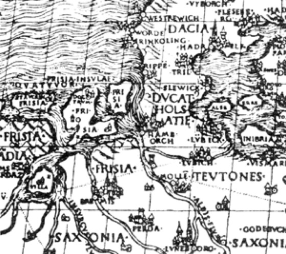 Karteninkunabel:Karteninkunabel: Ausschnitt aus der Karte des Nicolaus Cusanus, 1491.