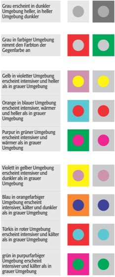 Kontrast 1Kontrast 1: Wirkung des Simultankontrasts bei bunten und unbunten Umfeldfarben.