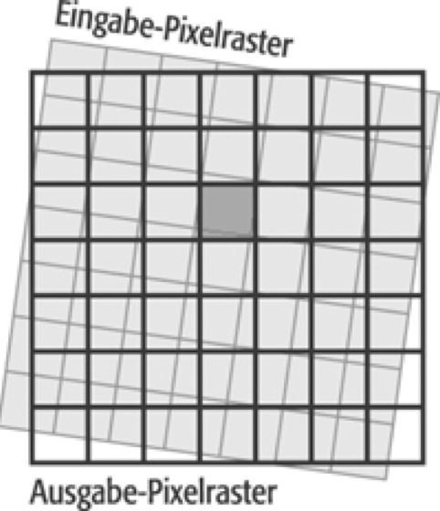 Nearest-Neighbour-Verfahren:Nearest-Neighbour-Verfahren: Zuordnung von Eingabe- und Ausgabe-Pixelraster.