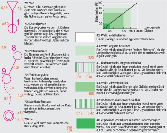 OrientierungslaufkartenOrientierungslaufkarten: Auszug aus dem Zeichenschlüssel für Orientierungslaufkarten (ISOM 2000).