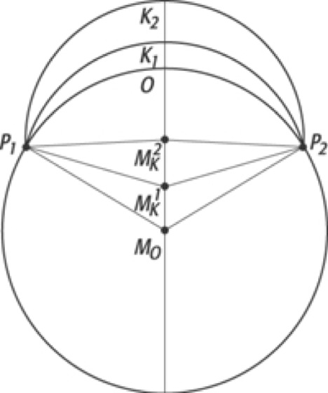 OrthodromeOrthodrome: Orthodrome: Orthodrome als kürzester Weg auf der Kugel (K1,K2 = Kleinkreise, O = Orthodrome, MK1,MK2 = Mittelpunkte der Kleinkreise K1 und K2, MO = Mittelpunkt der Kugel und des Großkreises der Orthodrome, P1,P2 = Punkte).