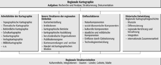 Erfassung, Aufarbeitung und Darbietung von Wesen und Leistungen des regionalkartographischen Schaffens begründet eine Fachdisziplin im Gesamtgebäude der Kartographie. Die Aufgaben liegen a) in der Recherche und Analyse, b) in der Herausarbeitung der spezifischen Strukturierung und c) in der Dokumentation der Befunde und Erkenntnisse.