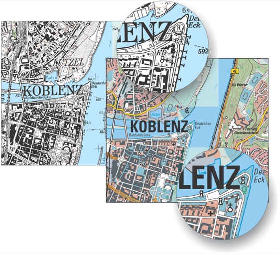 Topographische Karte 1Topographische Karte 1: Ausschnitte (mit Vergrößerungen) aus der Topographischen Karte 1:25000 von Rheinland-Pfalz und aus der Digitalen Topographischen Karte (DTK) 1:25000 von Rheinland-Pfalz.