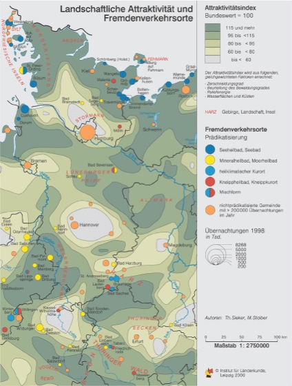 Touristenkarten Touristenkarten: Beispiel für eine touristische Synthesekarte aus dem Nationalatlas Bundesrepublik Deutschland.