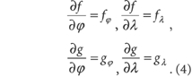 Durch die Funktionen f und g wird jeweils ein bestimmter Kartennetzentwurf festgelegt. In die Formel für die Längenverzerrung im Azimut a