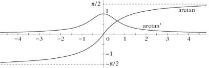 mit einem k ∈ ℤ. Mit tan ist auch aretan eine ungerade Funktion. Nach dem Satz über die Differentiation der Umkehrfunktion ist aretan differenzierbar, und für y ∈ ℝ gilt\begin{eqnarray}{\arctan }^{^{\prime} }(y)=\frac{1}{1+{y}^{2}}.\end{eqnarray}