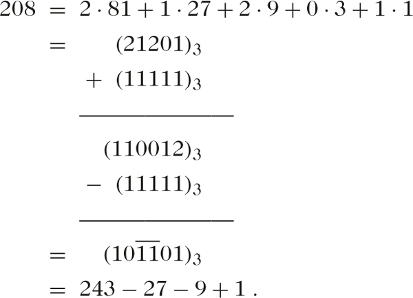 208 = 2 · 81 + 1 · 27 + 2 · 9 + 0 · 3 + 1 · 1 = (21201)3 + (11111)3