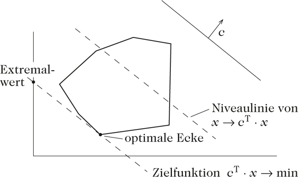 wichtige Aussage innerhalb der Optimierung. Der Eckensatz besagt, daß eine lineare Funktion f auf einem beschränkten und nichtleeren Polyeder M ihr Minimum in einer Ecke von M annimmt. Dasselbe gilt, wenn M unbeschränkte polyhedrale Teilmenge des nichtnegativen Orthanten ist und f auf M sein Minimum annimmt.