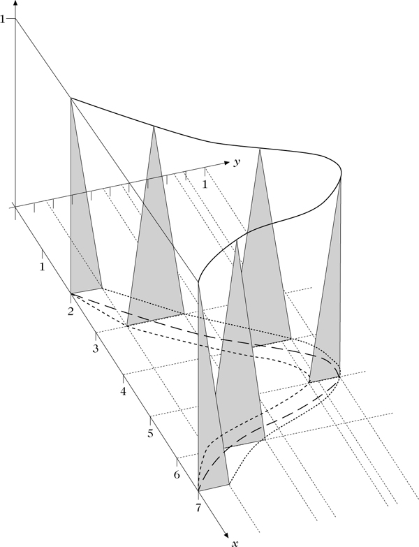 Fuzzy-Menge vom Typ 2. Die Zugehörigkeitswerte werden durch trianguläre Fuzzy-Mengen beschrieben, von denen hier lediglich 6 dargestellt sind.© Springer-Verlag GmbH Deutschland 2017 Bild vergrößern