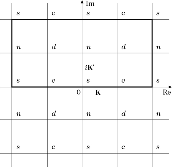 Die Zahlen K′ und iK′ spannen in der komplexen Zahlenebene das Rechteckgitter