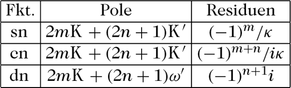 Die folgende Tabelle gibt Aufschluß über die Pole und die Residuen an diesen Polen: