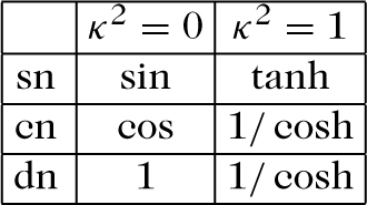 Normalerweise kommt man mit einem Satz von drei elementaren Funktionen, sn, cn und dn aus, denn für die restlichen Funktionen findet man folgende Zusammenhänge: