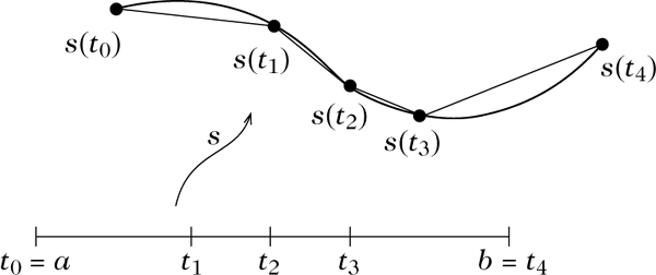 (k ∈ ℕ) von [a, b] betrachtet man die Länge des zugehörigen einbeschriebenen Polygonzugs durch die Punkte s(t0), s(t1),…s(tk), also die Größe