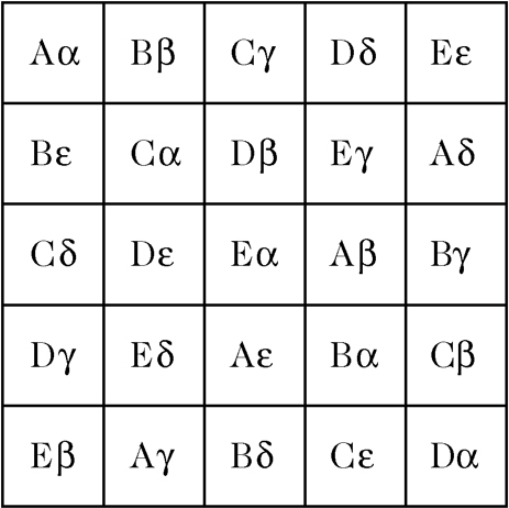 Griechisch-lateinisches Quadrat der Ordnung 5