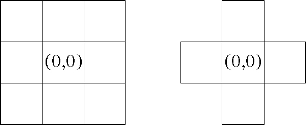 In der Praxis gängige Filter, z. B. zur Entrauschung oder der Konturverbesserung von Bildern, sind von der Größe 3 × 3 oder 5 × 5.
