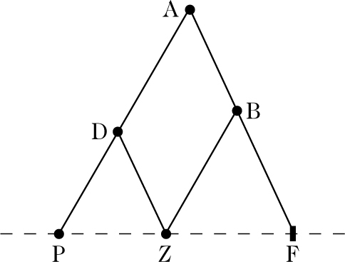 Der Pantograph besteht aus einem Gelenkparallelogramm ABZD, das um den Pol P bewegt werden kann; Fahrstift F, Zeichenstift Z und Pol P liegen auf einer Geraden.