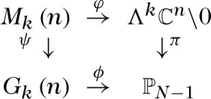 holomorpher Abbildungen, so daß \(\varphi (A)\,:=\,{A}_{1}^{t}\,\wedge\mathrm{\ldots }\wedge \,{A}_{k}^{t},\,N=\left(\begin{array}{c}n\\ k\end{array}\right)\), und