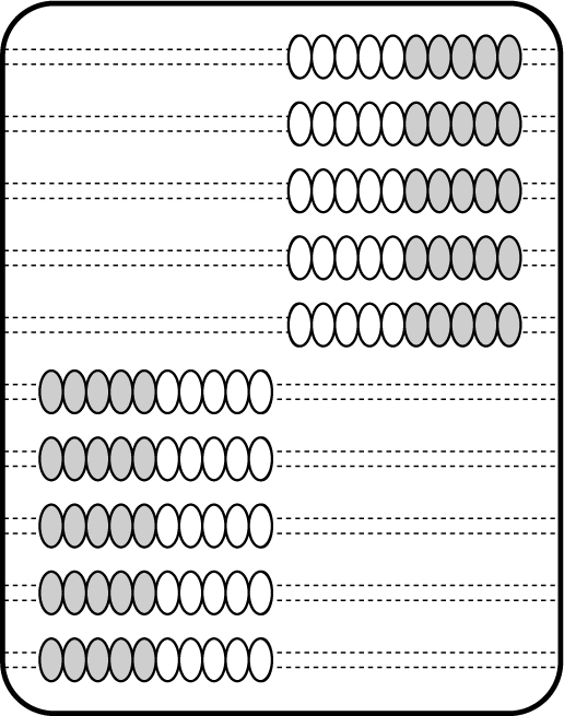 Beim Schulrechenbrett sind in einem Rahmen 10 Drähte parallel angeordnet, auf denen sich je 10 Kugeln befinden, die auf den Drähten verschiebbar sind. Die jeweils ersten fünf Kugeln sind gleich eingefärbt, die jeweils zweiten fünf in einer anderen Farbe (siehe Abb.).