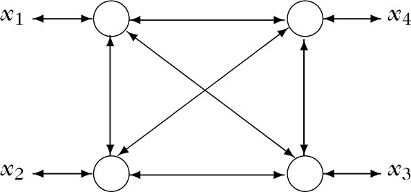 Im folgenden wird die prinzipielle Funktionsweise eines Sigma-Pi-Hopfield-Netzes erläutert (diskrete Variante). Dieses spezielle Netz ist einschichtig aufgebaut und besitzt n formale Neuronen. Alle formalen Neuronen sind bidirektional mit jeweils allen anderen formalen Neuronen verbunden (vollständig verbunden) und können sowohl Eingabeals auch Ausgabewerte übernehmen bzw. übergeben. Bei dieser topologischen Fixierung geht man allerdings implizit davon aus, daß alle Neuronen in zwei verschiedenen Ausführ-Modi arbeiten können (bifunktional): Als Eingabe-Neuronen sind sie reine fanout neurons, während sie als Ausgabe-Neuronen mit der sigmoidalen Transferfunktion T : ℝ → {−1, 0, 1},
