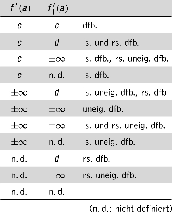 limx→0Qf (0, x) = ∞ an der Stelle 0 nicht differenzierbar, sondern uneigentlich differenzierbar.