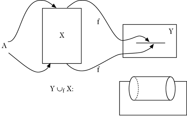 Seien X und Y topologische Räume, A ⊆ X ein abgeschlossener Teilraum, und f : A → Y eine stetige Abbildung. Auf der topologischen Summe X + Y sei ~ die durch a ~ f(a) für a ∈ A erzeugte Äquivalenzrelation. Dann ist der mit der Quotiententopologie versehene Quotientenraum Y ∪fX := (X+Y)/ ~ die Verklebung von X an Y mittels der Klebeabbildung f.
