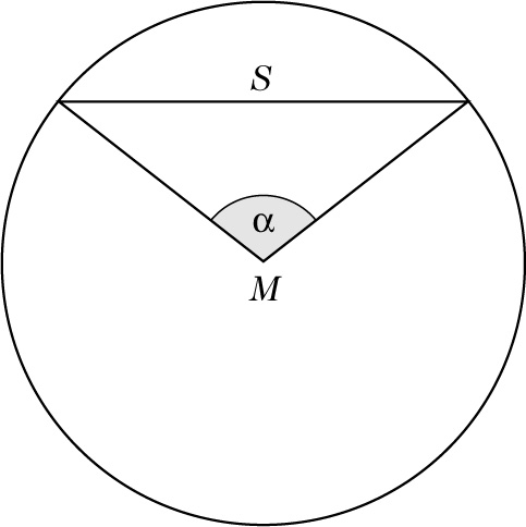 Winkel, dessen Scheitel der Mittelpunkt M eines gegebenen Kreises k ist, und dessen Schenkel den Kreis in den Endpunkten einer gegebenen Sehnes dieses Kreises schneiden.