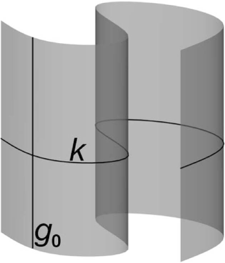 Unter einer Zylinderfläche wird dabei eine Fläche verstanden, die aus allen Geraden g des Raumes besteht, die mit einer vorgegebenen Kurve k, der Leitkurve der Zylinderfläche, jeweils einen gemeinsamen Punkt besitzen und zu einer vorgegebenen Geraden g0, die ebenfalls k schneidet, parallel sind. Diese Geraden werden als die Erzeugenden der Zylinderfläche bezeichnet.