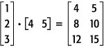 äußeres Produkt, dyadisches Produkt, Eouter product, dyadic product, tensor product, die Verknüpfung zweier Vektoren zu einer Matrix. Hierbei wird ein n-dimensionaler Spaltenvektor a mit einem Zeilenvektor bT der Dimension m zu einer Matrix C der Dimension (n,m) "multipliziert" (Beispiel siehe Abb. ). Im Gegensatz dazu verknüpft das innere Produkt einen Zeilen- mit einem Spaltenvektor und ergibt einen Skalar. Die Matrix C hat dabei die Eigenschaft, daß die Multiplikation von C mit b, d.h. dem bT entsprechenden Spaltenvektor, ein Vielfaches des Vektors a ergibt. Falls b die Länge 1 hat, ergibt sich der Vektor a. Beim Assoziativspeicher kann der Vektor b als Eingabe- und der Vektor a als Ausgabemuster interpretiert werden. Die Matrix C beschreibt dann die Verknüpfungen der künstlichen Neurone.