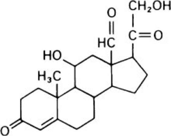 Aldosterons [von alcohol dehydrogenatus (Aldehyd), griech. stear = Fett],18-Oxocorticosteron, E aldosterone, Mineralocorticoid ( siehe Abb. ) aus dem steroidogenen Adrenalgewebe (Zona glomerulosa der Nebennierenrinde), das der Homöostase des Elektrolyt- und Wasserhaushalts der Nieren sowie der Schweiß-, Speichel- und Verdauungsdrüsen dient. Aldosteron steigert in der Niere die tubuläre Resorption von Na+ (Natrium) und H2O und deren Begleitionen Cl- (Chlor) und HCO3-. Ebenso fördert Aldosteron in entgegengesetzter Richtung die K+- (Kalium) und H+-Sekretion. Im Zuge der Hitzeadaptation wird als Folge einer erhöhten Aldosteronsekretion weniger NaCl mit dem Schweiß abgegeben. Aldosteron verstärkt außerdem die Erregbarkeit der glatten Gefäßmuskulatur (Muskulatur) gegenüber konstriktorischen Reizen und unterstützt dadurch die blutdrucksteigernde Wirkung von Angiotensin II. Hormone, Steroidhormone.