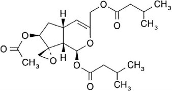 Baldrianm, Valeriana,E valerian, Gattung der Baldriangewächse, deren bekannteste Art der von alters her als Heil- und Gewürzpflanze geschätzte Arznei-Baldrian, Valerianaofficinalis ( siehe Abb. 1 ), ist. Die moderne Pharmazie verwendet vor allem die auf Herabsetzung der Reflexerregbarkeit und Dämpfung des psychomotorischen Bereichs des Zentralnervensystems beruhende nervenberuhigende, schlaffördernde und krampflösende Wirkung. Somit wirkt Baldrian sowohl sedierend als auch hypnotisch. Da die hypnotische Wirkung eher gering ist, wird es vor allem bei leichten Schlafstörungen empfohlen. Entsprechend ist Baldrian Bestandteil von verschiedenen Beruhigungs- und Schlafmitteln (Baldrianpräparate). Als Droge dient vor allem der Wurzelstock, der neben anderen Substanzen das Glykosid Valerid, die Alkaloide Chatinin und Valerin sowie das etherische Baldrianöl enthält. Letzteres besteht unter anderem aus Bornylisovalerianat, -formiat und -acetat, Sesquiterpenen sowie den für die sedative Wirkung der Droge verantwortlichen Isovaleriansäureestern Valtrat, Didrovaltrat und anderen (Valepotriate;siehe Abb. 2 ). Die wirksamen Bestandteile des Baldrian setzen u.a. an den Neurotransmittern im Gehirn an und beeinflussen z.B. das "Schlafhormon" Melatonin. Gewisse Baldrianinhaltsstoffe interagieren auch mit dem GABAA-Rezeptor (GABA-Rezeptoren). Die Einnahme von zu großen Mengen von Baldrian bewirkt Vergiftungserscheinungen, die sich in Kopfschmerzen, Unruhe, Schlafstörungen und Störungen der Herztätigkeit bis hin zu zentralen Lähmungen äußern.