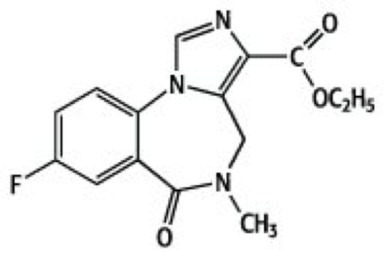 Flumazenil s,Flumazepil, Eflumazenil, ein kompetitiver Benzodiazepinantagonist (Benzodiazepine). Flumazenil ( siehe Abb. ) hemmt spezifisch die Bindung von Liganden, die ihre Wirkung am Benzodiazepinrezeptor entfalten. GABA-Rezeptorantagonisten.