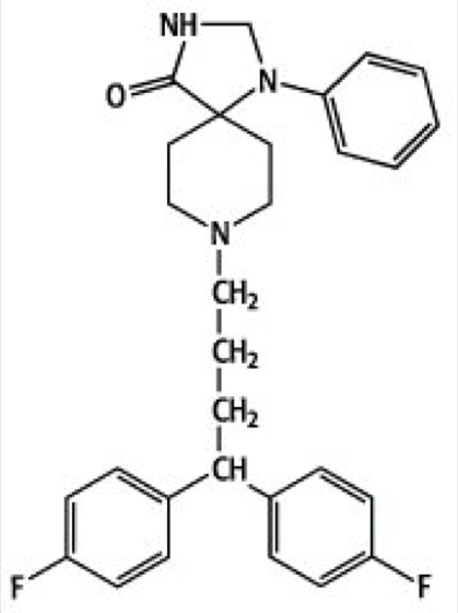 Fluspirilen s, Efluspirilene, zu den Diphenylbutylpiperidinen gehörendes ( siehe Abb. ), stark antipsychotisch wirkendes Neuroleptikum mit extrem langer Eliminationshalbwertszeit von ca. 7 Tagen. Es eignet sich deshalb zur Rückfallprophylaxe bei Schizophrenien. Antipsychotika.