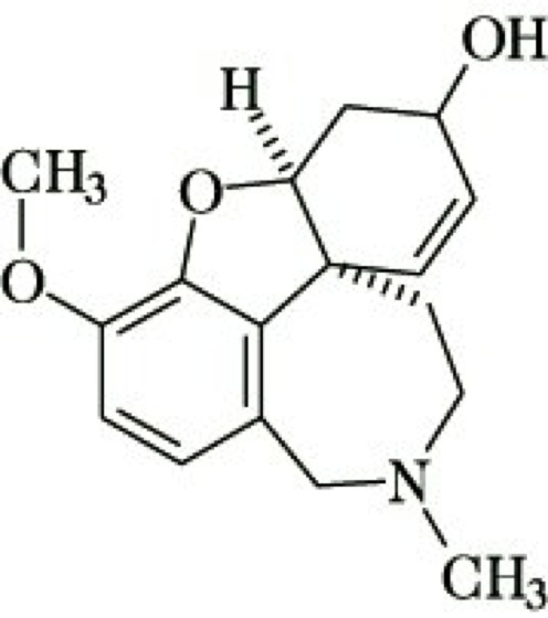 Galanthamins, Alkaloid ( siehe Abb. ), das aus der Zwiebel von Schneeglöckchen (Galanthus nivalis) gewonnen wird und die Acetylcholin-Esterase (AChE) hemmt, wodurch es den Acetylcholin-Spiegel erhöht. Außerdem bindet Galanthamin auch an Acetylcholinrezeptoren und stimuliert auf diese Weise direkt die Neuronenfunktion. Diese Wirkung könnte ein Fortschreiten der Alzheimer-Krankheit aufhalten – im Gegensatz zu den bisherigen Wirkstoffen, wie Tacrin, die die Symptome der Erkrankung lediglich eine Zeitlang lindern können. Neben dieser neuen Anwendungsmöglichkeit wird Galanthamin auch bei Myasthenie und Myopathien verwendet.