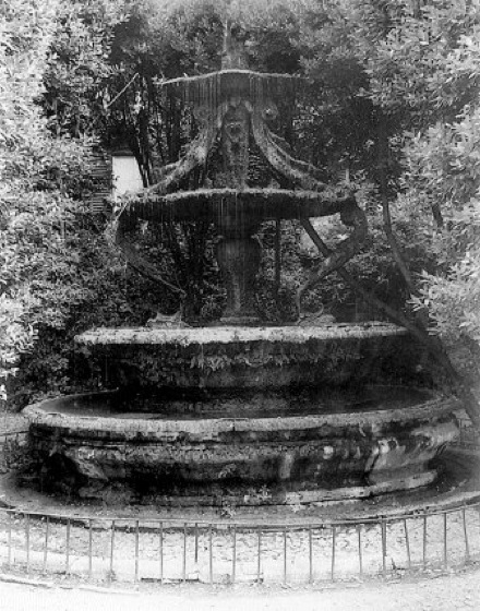 Abb. 1: Der Römische Brunnen als Modell der Hirnfunktion. Dieser Brunnen wurde 1616 gebaut. Wie hier das Wasser von Becken zu Becken fließt, so stellte man sich den Fluß des Spiritus animalis durch die Ventrikel vor, die ihm dabei immer neue psychische Formen (Wahrnehmung, Denken, Gedächtnis) aufprägen sollten.