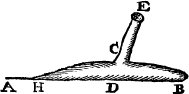 Abb. 5: Darstellung der Verbindung eines Nervs (E-C) mit einem Muskel (H-D-B) von Boehrhaave aus dem Jahr 1734. Hier sind die hydromechanischen Vorstellungen von Descartes konkret illustriert: Der hohle Nerv leitet den Spiritus animalis in den Muskel, der dadurch hart wird, aber auch größer werden müßte.