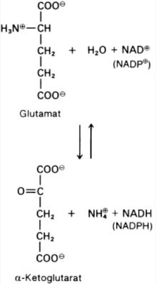 Glutaminsäure-Dehydrogenasew,Glutamat-Dehydrogenase, Abk. GDH, Eglutamic acid dehydrogenase, mitochondriales Enzym, das die NAD+-abhängige Dehydrierung von Glutamat (Glutaminsäure) zu α-Ketoglutarat und Ammoniak, aber auch die für die Bildung von Glutamat wichtige Umkehrreaktion katalysiert ( siehe Abb. ). Sie ist am Glutaminsäure-Stoffwechsel sowie am GABA-Stoffwechsel in Nervenzellen beteiligt.