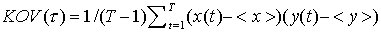 In der Statistik ist die Korrelation die auf die Varianz normierte Kovarianz. Werden zwei Variablen x(t) und y(t) zu verschiedenen Zeiten gemessen, so ist mit deren Mittelwerten