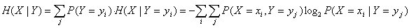 H(Y). Als Maß für die über den gestörten Kanal verlorengegangene Information wird von Shannon die bedingte Entropie der Nachricht (gegeben das Signal am Kanalausgang) folgendermaßen definiert:![]()