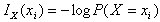 Der Informationsgehalt des Ereignisses (oder der Nachricht) X = xi ist hierbei ![]()