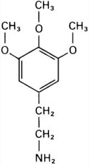 Meskalin s [von aztekisch mexkalli = Tequila (berauschendes Getränk aus Kakteen) über spanisch mexcal], Mescalin, 3,4,5-Trimethoxyphenylethylamin, Abk. MES,Emescaline, eine psychedelisch-halluzinogene Droge (Halluzinogene) aus mexikanischen Kakteen (Lophophora williamsii;Peyote-Kaktus), die früher bei religiösen Feiern verwendet wurde (mexikanische Zauberdroge Peyotl). Für den Rauschzustand (Euphorie und Farbvisionen) sind etwa 0,2 bis 0,5 g Meskalin erforderlich. Meskalin und verwandte Phenylethylamine zeigen Strukturähnlichkeit mit Dopamin ( siehe Abb. ) und wirken als Partialagonisten an 5-HT2-Rezeptoren (Serotoninrezeptoren), v.a. im catecholaminergen Locus coeruleus und Cortex. Außerdem wirkt Meskalin als Glutaminsäure-Agonist im Cortex. Wegen seiner serotonergen Wirkung wurde Meskalin auch zur Therapie der Depression und von Psychosen eingesetzt, später jedoch durch andere Substanzen ersetzt. Rauschgifte.