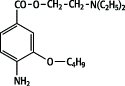 Oxybuprocains,Eoxybuprocaine, Lokalanästhetikum vom Estertyp, das sich vom Procain herleitet ( siehe Abb. ); wird als 0,4-1%ige Lösung zur Oberflächenanästhesie verwendet. Nebenwirkungen: Dermatitis, Urticaria, Hornhautödeme und Verlust der Sehschärfe bei Anwendung am Auge.