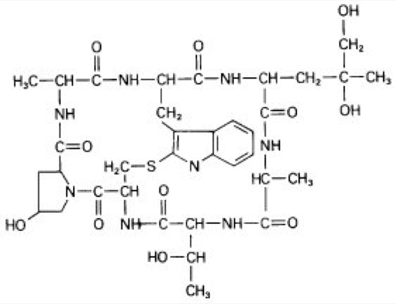 Phalloidin s, Ephalloidin, Hauptvertreter der Phallotoxine ( siehe Abb. ). Mit fluoreszierenden Farbstoffen markiertes Phalloidin wird in der Zellforschung häufig zur Sichtbarmachung des Actin-Zellskeletts verwendet.