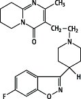Risperidon s,E risperidone, ein mit Clozapin vergleichbares, antipsychotisch wirksames atypisches Neuroleptikum. Risperidon ist ein Benzisoxazol-Derivat ( siehe Abb. ), das antagonistisch an den Dopaminrezeptoren (D2), den Serotoninrezeptoren (5-HT2) und den α2-adrenergen Rezeptoren wirkt. Es wird zur Behandlung von Psychosen, wie z.B. Schizophrenie, verwendet. Im Unterschied zu anderen atypischen Neuroleptika, wie z.B. Clozapin und Quetiapin, verursacht Risperidon erhöhte Prolactin-Spiegel und bei höheren Dosen motorische Störungen (extrapyramidale Syndrome, Spätdyskinesien).