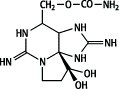 Saxitoxins [von latein. saxium = Fels, griech. toxikon = (Pfeil-) Gift], Abk. STX, Eparalytic shellfish poison, ein in den Dinoflagellaten Gonyaulax catenella und Gonyaulax tamarensis durch endosymbiontisch lebende Bakterien produzierter Giftstoff ( siehe Abb. ), der von resistenten Planktonfiltrierern, hauptsächlich Muscheln, mit der Nahrung aufgenommen und gespeichert wird. Saxitoxin und seine Homologe, die Gonyautoxine, wurden auch in giftigen Krabben der südpazifischen Arten Zosimus aeneus, Atergatis floridus und Platipodia granulosa sowie in einigen Schneckenarten gefunden, die das Toxin durch ihre Hauptnahrung, die Rotalge Jania sp., erhalten. Der Verzehr Saxitoxin-haltiger Muscheln oder Krabben führt zu Lähmungs-Erscheinungen, die sich zunächst in Parästhesien im Bereich der Gesichtsmuskulatur äußern und später den gesamten Körper erfassen. In über 8% der Fälle verläuft die Saxitoxin-Vergiftung tödlich (Tod durch Atemlähmung). Die letale Dosis für Erwachsene wird mit 480-4375 Maus-Einheiten/kg Körpergewicht angenommen (LD50 Maus = 9 μg/kg Körpergewicht). Kinder und Jugendliche bis 18 Jahre reagieren wesentlich empfindlicher als Erwachsene auf Saxitoxin, die minimale letale Dosis bei Kindern unter 6 Jahren liegt bei nur 140 Maus-Einheiten/kg Körpergewicht. Saxitoxin wirkt vermutlich auf den gleichen Rezeptor wie Tetrodotoxin und ist wie dieses nicht membrangängig; es blockiert Natriumkanäle von der extrazellulären Seite aus, wodurch die Entstehung von Aktionspotentialen und damit die Erregungsausbreitung in Nerven und Muskeln verhindert wird.