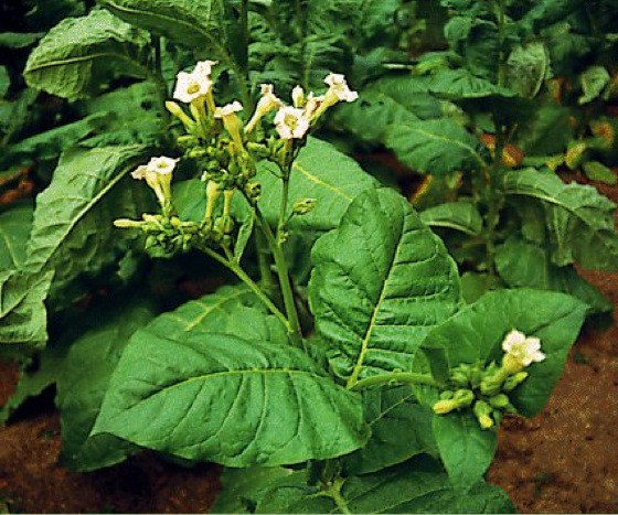 Tabakm, Nicotiana, Etobacco plant, insbesondere im tropischen und subtropischen Amerika heimische Gattung der Nachtschattengewächse mit über 70 Arten. Charakteristisch für die Gattung sind die Nicotianaalkaloide, von denen dem Nicotin die größte Bedeutung zukommt. Dieses wirkt anregend auf das Nervensystem und macht den Tabak zu einer der heute bedeutendsten Genußpflanzen (Drogenabhängigkeit, Rauschgifte, Sucht; siehe Zusatzinfo ). Bei weitem wichtigste Art der Gattung ist der einjährige Virginische Tabak, Nicotiana tabacum ( siehe Abb. ), eine bis 3 m hohe, in der Regel unverzweigte Pflanze mit länglich-elliptischen bis lanzettlichen Blättern sowie rötlichen Blüten. Nicotiana rustica dient heute weniger zur Herstellung von Tabakwaren als zur Gewinnung von Nicotin, das wegen seiner hochgiftigen Wirkung auf niedere Tiere, wie Insekten und Würmer usw., vor allem als Schädlingsbekämpfungsmittel eingesetzt wird. Kürzlich wurde ein MAO-Hemmer in Tabakblättern identifiziert, das 2,3,6-trimethyl-1,4-Naphthoquinon.