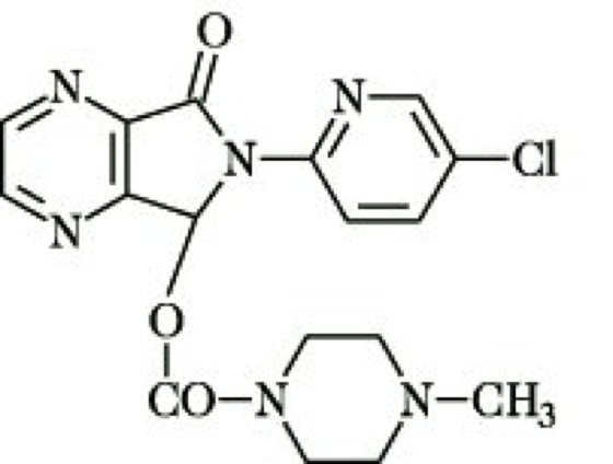 Zopiclons, Ezopiclone, ein Hypnotikum aus der Klasse der Cyclopyrrolone ( siehe Abb. ). Zopiclon bindet wie die Benzodiazepine am GABAA-Rezeptor (GABA-Rezeptoren). Im Vergleich zu den Benzodiazepinen weist es eine andere chemische Struktur, eine größere therapeutische Breite und ein kleineres Abhängigkeitspotential (Abhängigkeit) auf. Im Unterschied zu den Benzodiazepinen reduziert es weniger den REM-Schlaf.