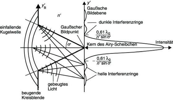breiten Kern (λ0 Wellenlänge, n'sinσ' numerische Apertur) und entspricht dem Bildpunkt der aberrationsfreien Abbildung (Abb.). Beugungserscheinungen.