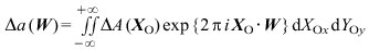 des variablen Teils ΔA(XO) der Amplitudentransparenz des Objektes bzw. das Ortsfrequenzspektrum Δd(W)=2A0Δa(W) des variablen Teils ΔD(XO)=2A0ΔA(XO) der Objektintensitätstransparenz D(XO)=A02+2A0ΔA(XO)=D0+ΔD(XO) mit dem entsprechenden Bildintensitätsspektrum ![]()